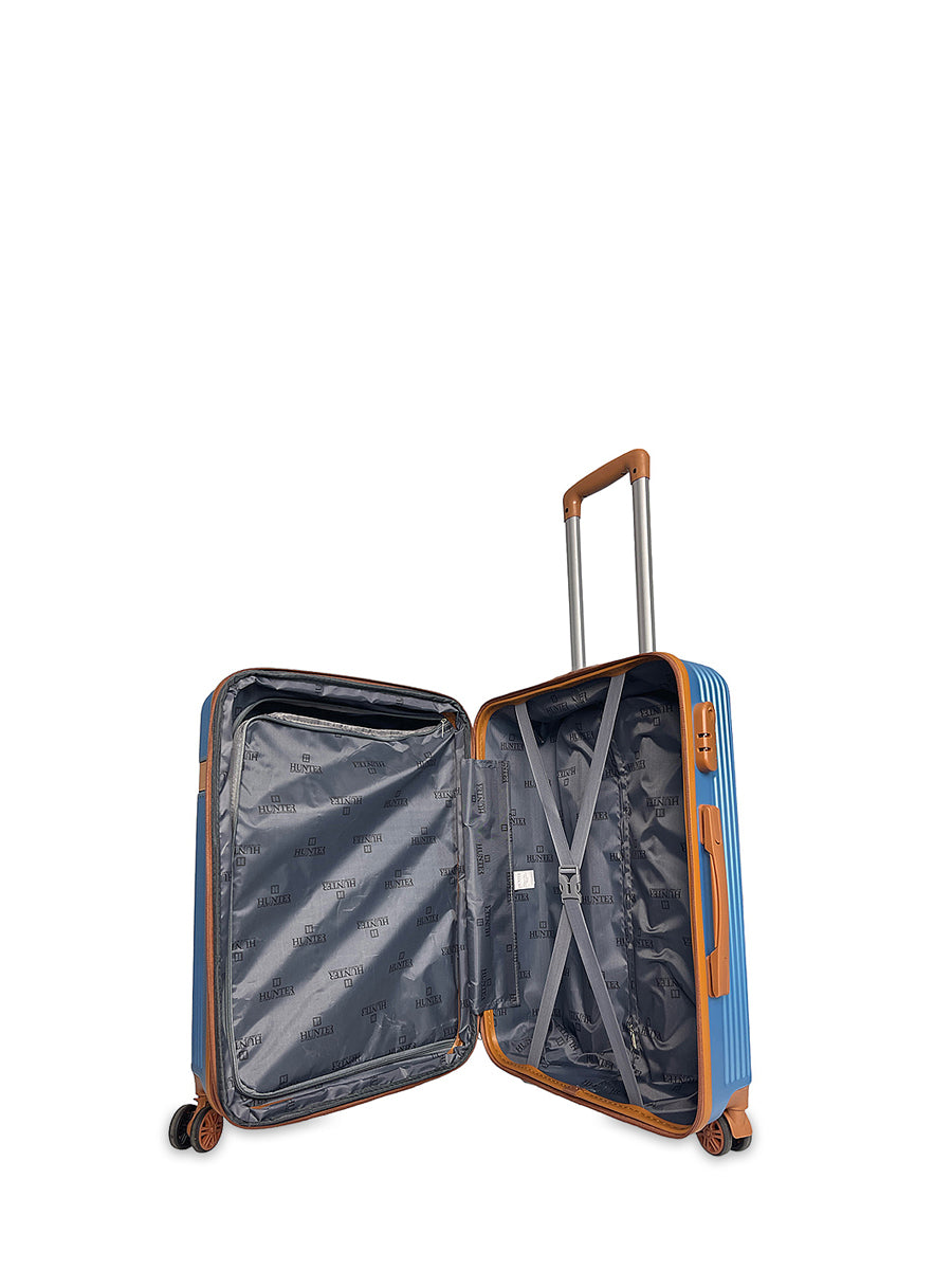 Βαλίτσα καμπίνας ABS-PC Kythnos. Διαθέτει 4 περιστρεφόμενους τροχούς 360 μοιρών και επέκταση 3 εκ.. Έχει εσωτερικά φόδρα HUNTER και λάστιχα. Διαθέτει κλειδαριά στο πλάι και καφέ φινιρίσματα. Είναι ιδανική για cabin size και για μικρές εξορμήσεις.