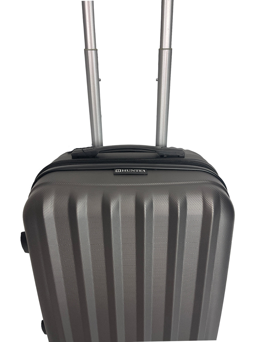 Βαλίτσα καμπίνας ABS Santorini Γκρι. Διαθέτει 4 περιστρεφόμενους τροχούς 360 μοιρών και επέκταση 3 εκ.. Έχει εσωτερικά φόδρα HUNTER και λάστιχα ασφαλείας. Διαθέτει κλειδαριά στο πλάι και μαύρα φινιρίσματα. Είναι ιδανική για cabin size και για μικρές εξορμήσεις.