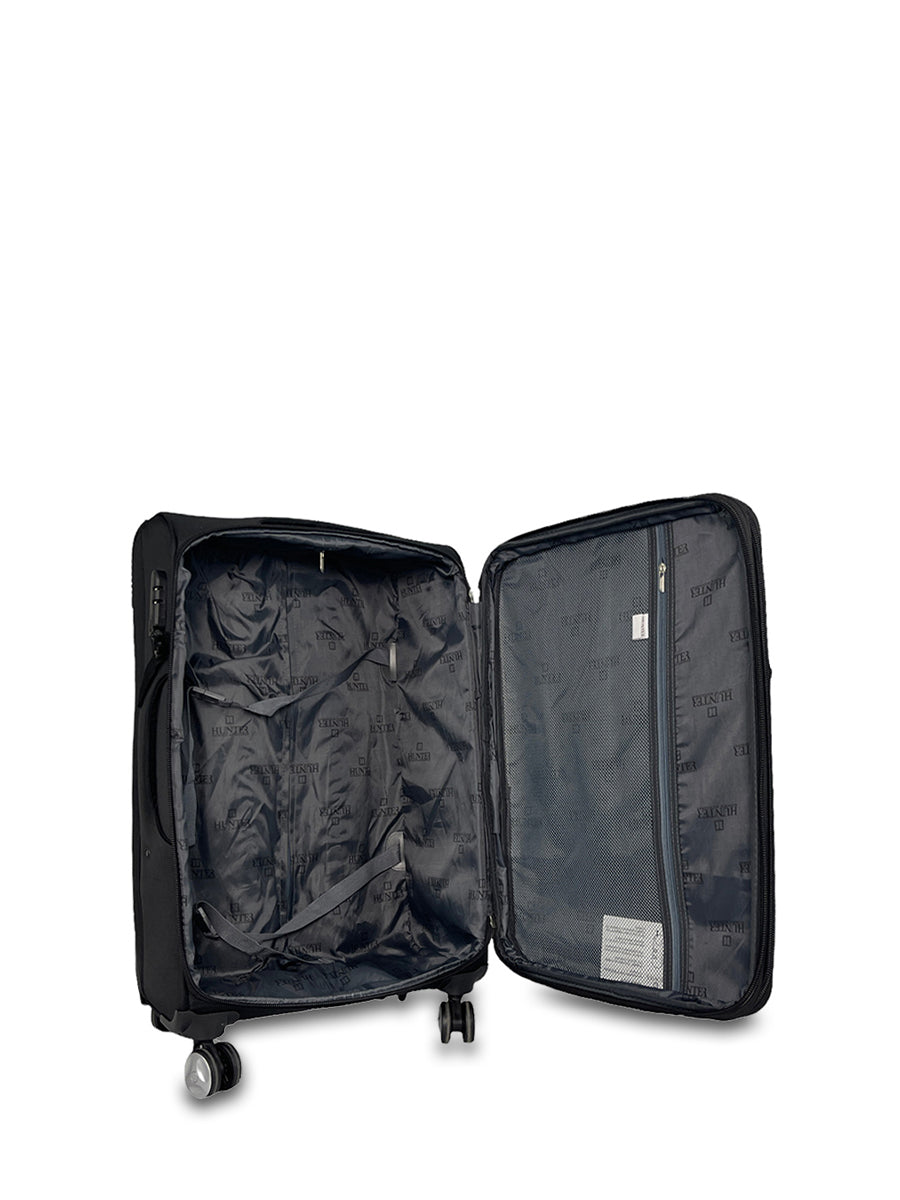 Βαλίτσα μεσαία Νάυλον Crete. Διαθέτει 4 περιστρεφόμενους τροχούς 360 μοιρών και επέκταση 3 εκ.. Έχει εσωτερικά φόδρα HUNTER και ιμάντες ασφαλείας. Διαθέτει κλειδαριά στο πλάι και εξωτερικές θήκες μπροστά. Είναι ιδανική για τις διακοπές σου, αν είσαι λάτρης των υφασμάτινων αποσκευών.
