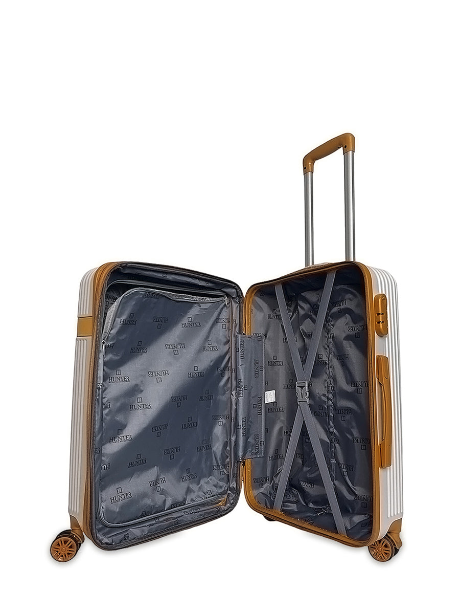 Βαλίτσα μεσαίου ABS-PC Ithaki Λευκό. Διαθέτει 4 περιστρεφόμενους τροχούς 360 μοιρών και επέκταση 3 εκ.. Έχει εσωτερικά φόδρα HUNTER και λάστιχα. Διαθέτει κλειδαριά στο πλάι και μαύρα φινιρίσματα. Είναι ιδανική για εξορμήσεις σου.