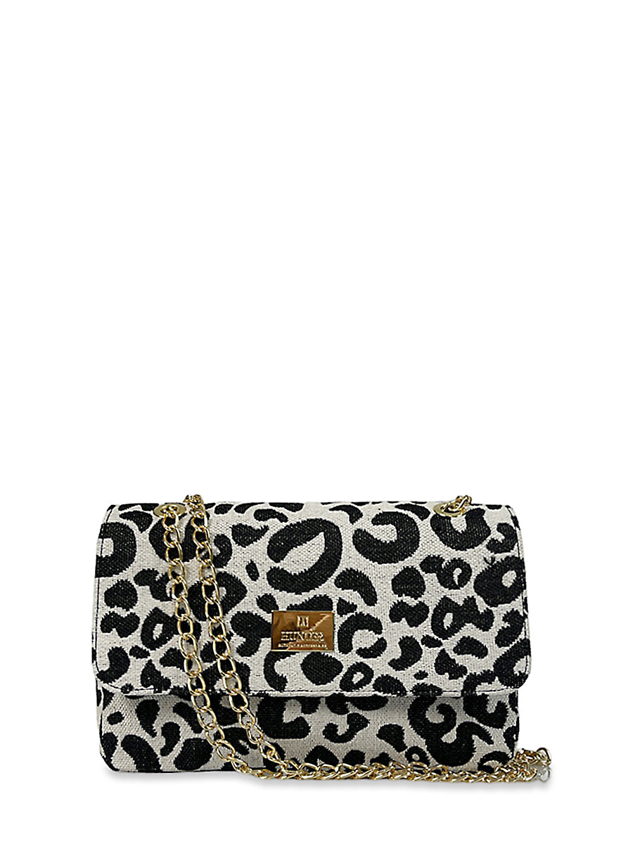 Γυναικεία τσάντα ώμου flap Leopard Λευκό