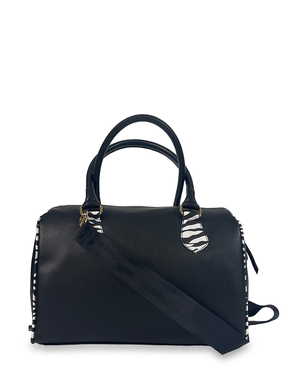 Γυναικεία τσάντα barrel Jungle με κλείσιμο με μεταλλικό φερμουάρ. Διαθέτει αποσπώμενο ιμάντα και χρυσές μεταλλικές λεπτομέρειες και μπορεί να συνδυαστεί με όλα σου τα looks.
