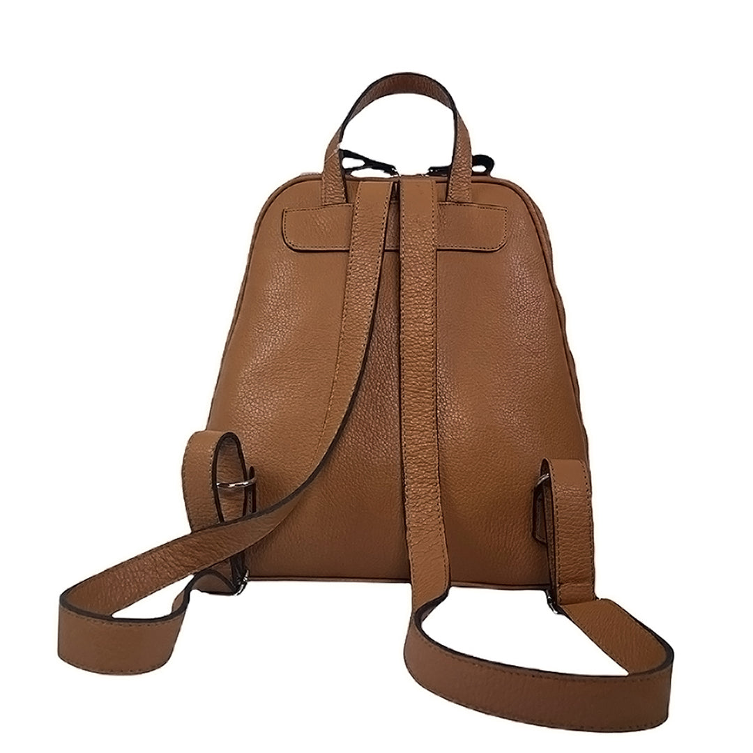 Δερμάτινη γυναικεία τσάντα πλάτης οβάλ με κλείσιμο με διπλό φερμουάρ. Διαθέτει εξωτερική θήκη με φερμουάρ μπροστά και ενδιάμεσο χώρισμα και 2 εσωτερικές θήκες. Επίλεξε τη για όλα σου τα stylish looks.