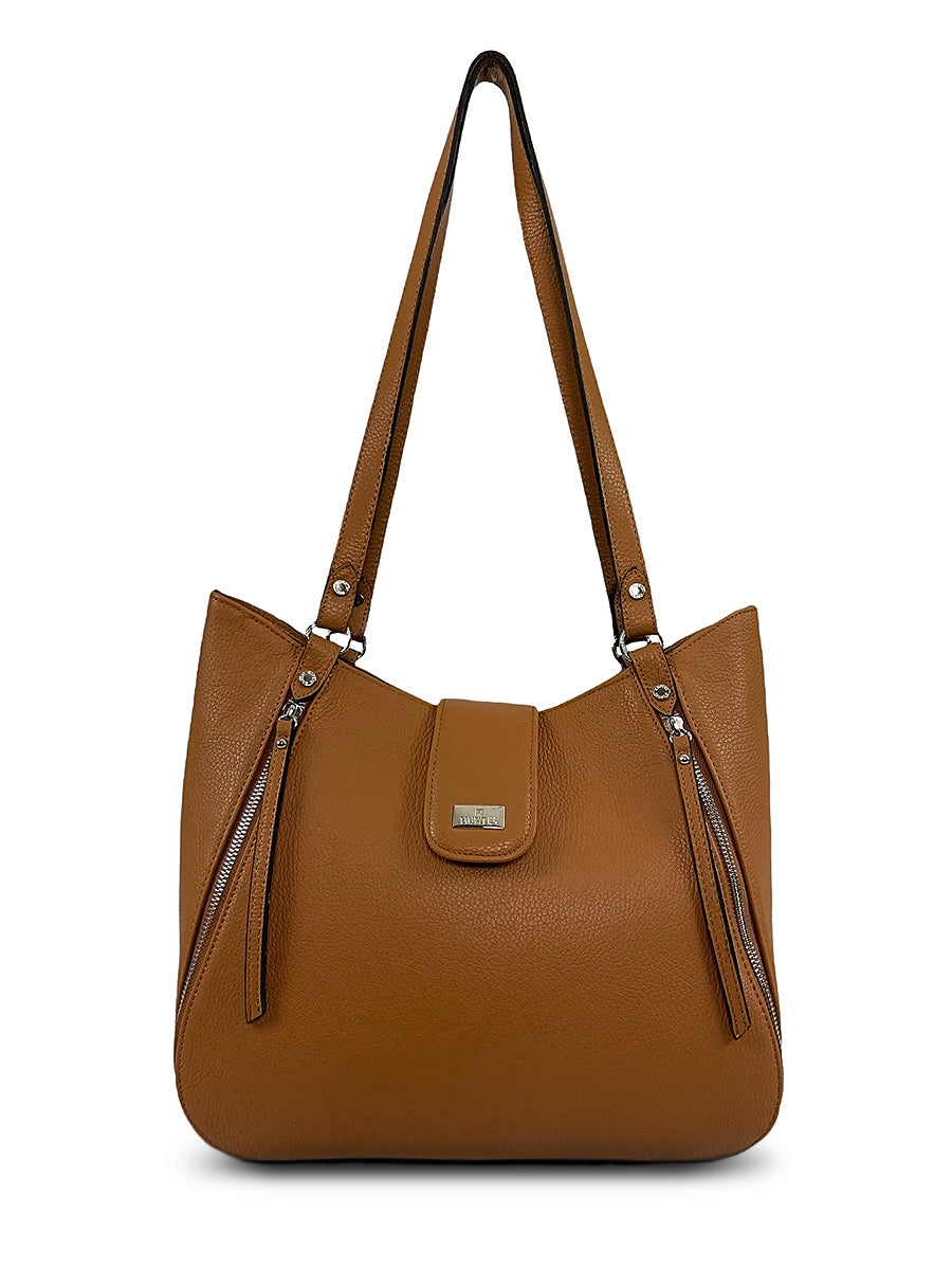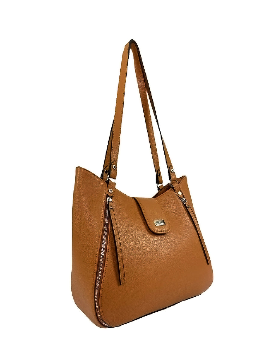 Δερμάτινη γυναικεία τσάντα ώμου strict με κλείσιμο με φερμουάρ. Διαθέτει εξωτερικές θήκες με φερμουάρ μπροστά και 2 εσωτερικές θήκες. Επίλεξε τη για όλα σου τα stylish looks.