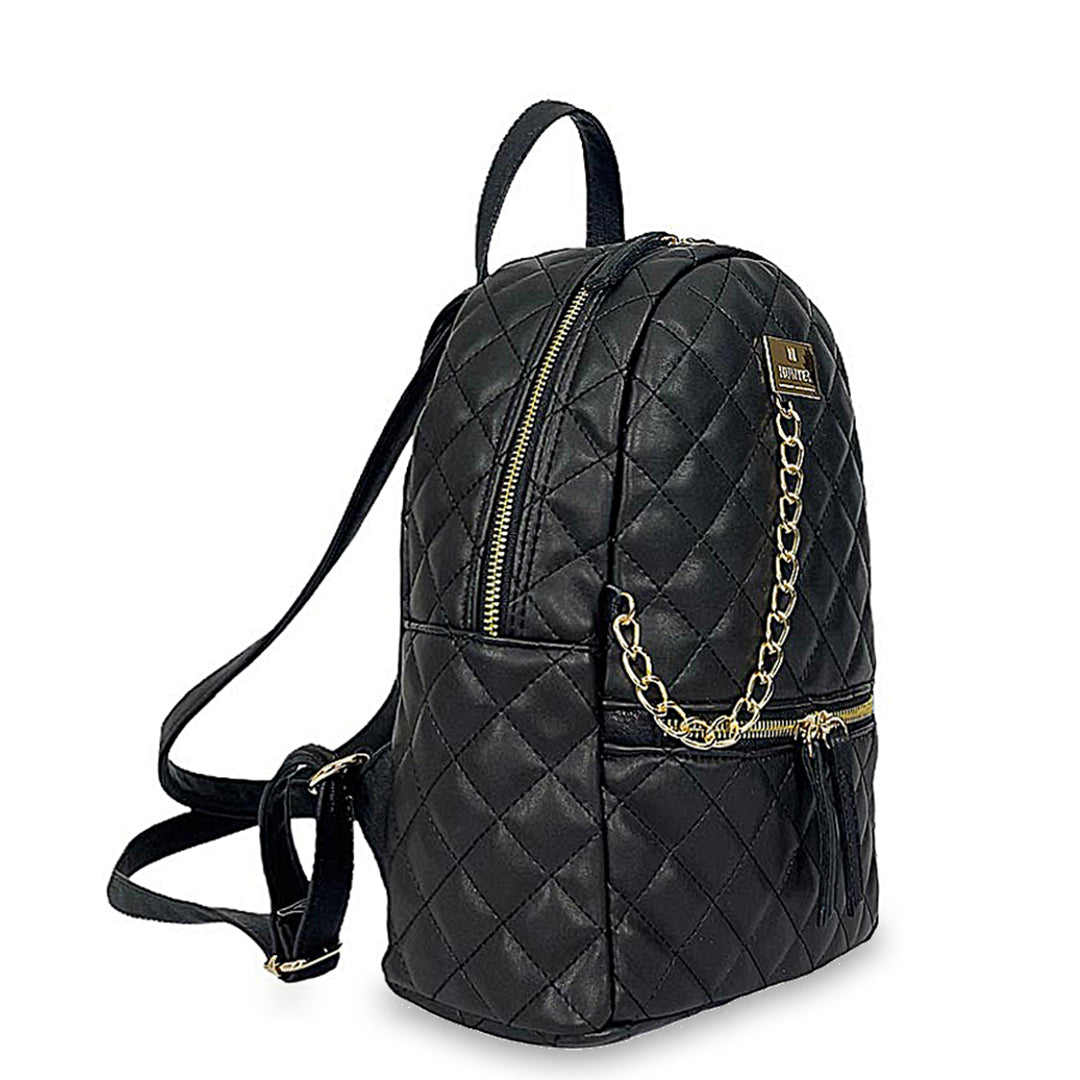Γυναικεία τσάντα πλάτης middle Quilted Μαύρο συνδυάζει πρακτικότητα και glam αισθητική. Το λουστρίνι καπιτονέ του δημιουργεί μοναδική υφή και φως, ενώ οι αλυσίδες προσθέτουν έναν ανεπιτήδευτα fashion-forward χαρακτήρα.