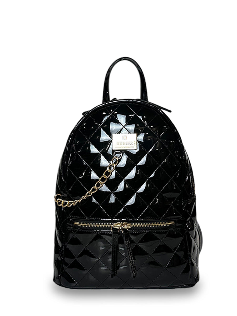 Γυναικεία τσάντα πλάτης middle Quilted Μαύρο Λουστρίνι