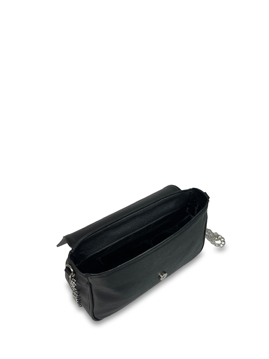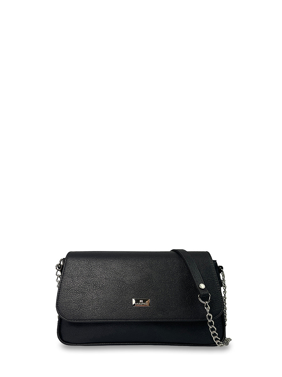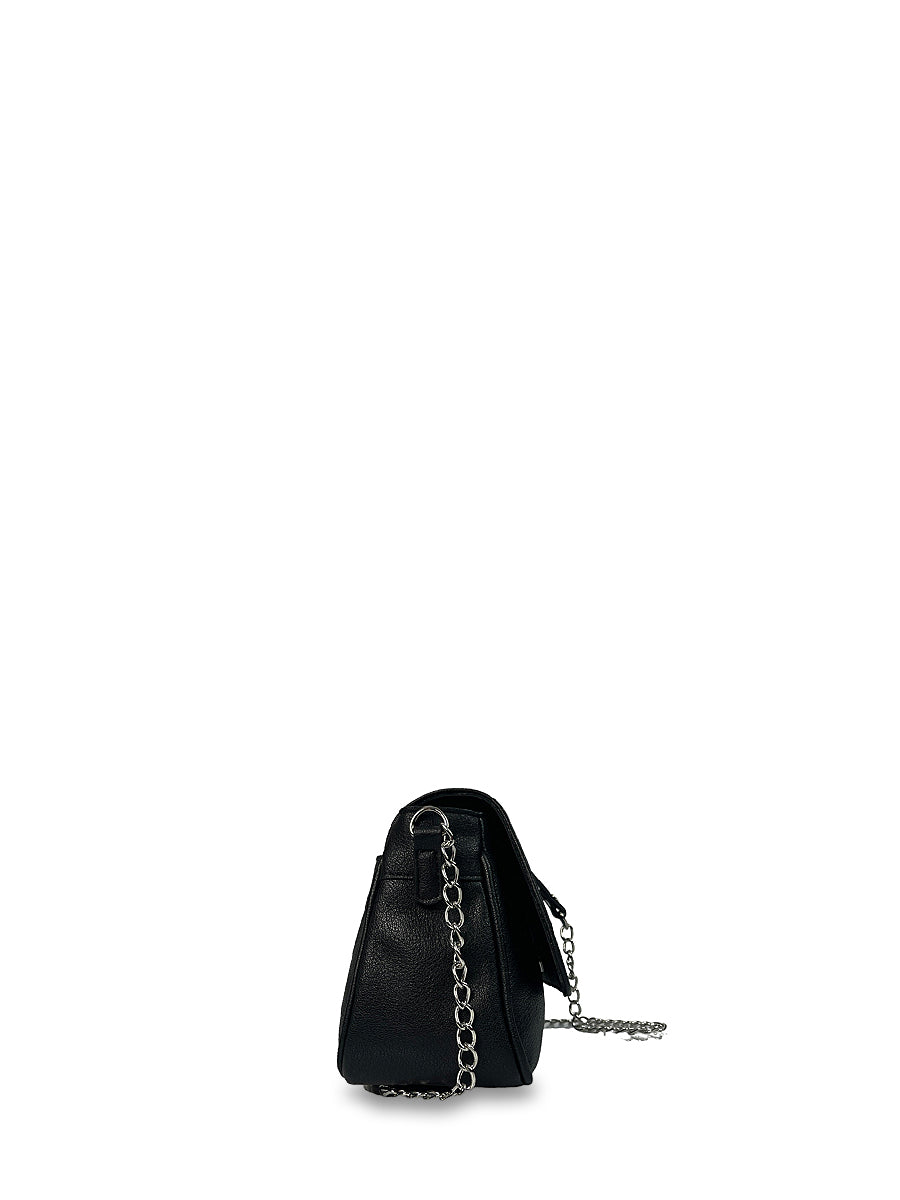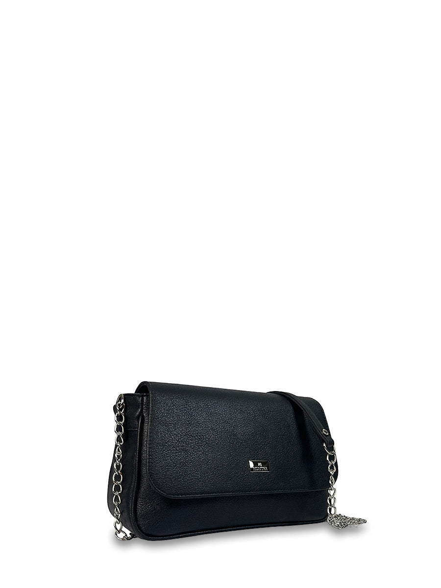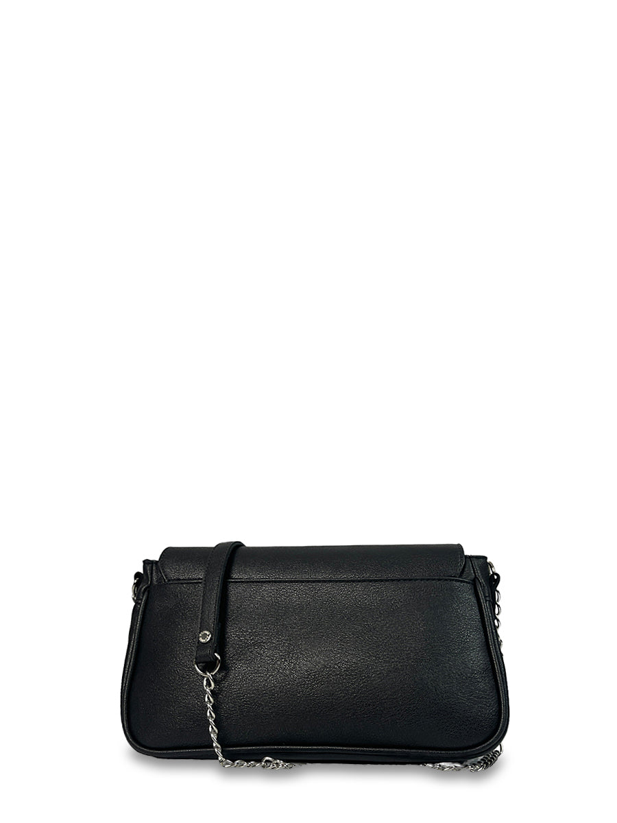 Γυναικεία τσάντα ώμου Imaginarious Μαύρο με εντυπωσιακά απλές γραμμές και λουράκι με αλυσίδα. Διαθέτει μία εξωτερική θήκη στο πίσω μέρος και μία εσωτερική θήκη με φερμουάρ. Συνδύασε τη με όλα τα outfits σου και απογείωσε το στυλ σου.