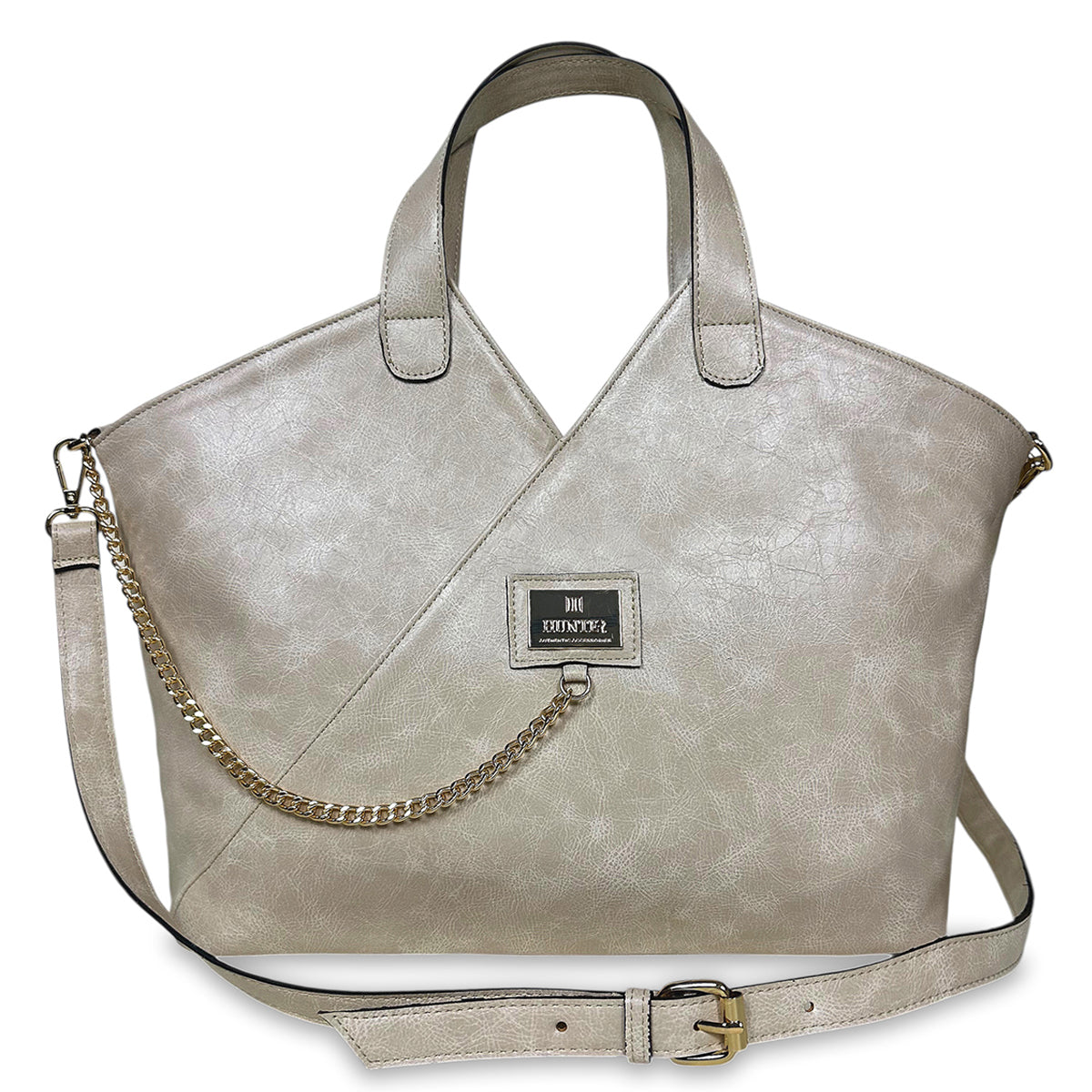 Γυναικεία τσάντα ώμου triangle Solea Μπεζ με κομψό, structured design. Ιδανική για γραφείο και καθημερινή χρήση, συνδυάζει λειτουργικότητα και στυλ. Η μεταλλική αλυσίδα προσθέτει διακριτική πολυτέλεια.