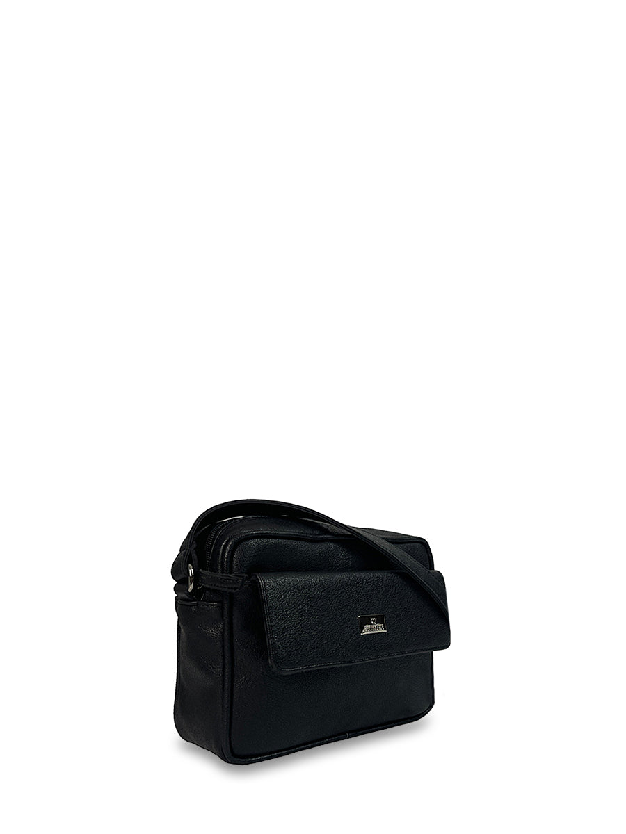 Γυναικεία τσάντα χιαστί square Imaginarious Μαύρο με εντυπωσιακά απλές γραμμές και εξωτερική θήκη μπροστά. Διαθέτει μία εσωτερική θήκη με φερμουάρ. Συνδύασε τη με όλα τα outfits σου και απογείωσε το στυλ σου.